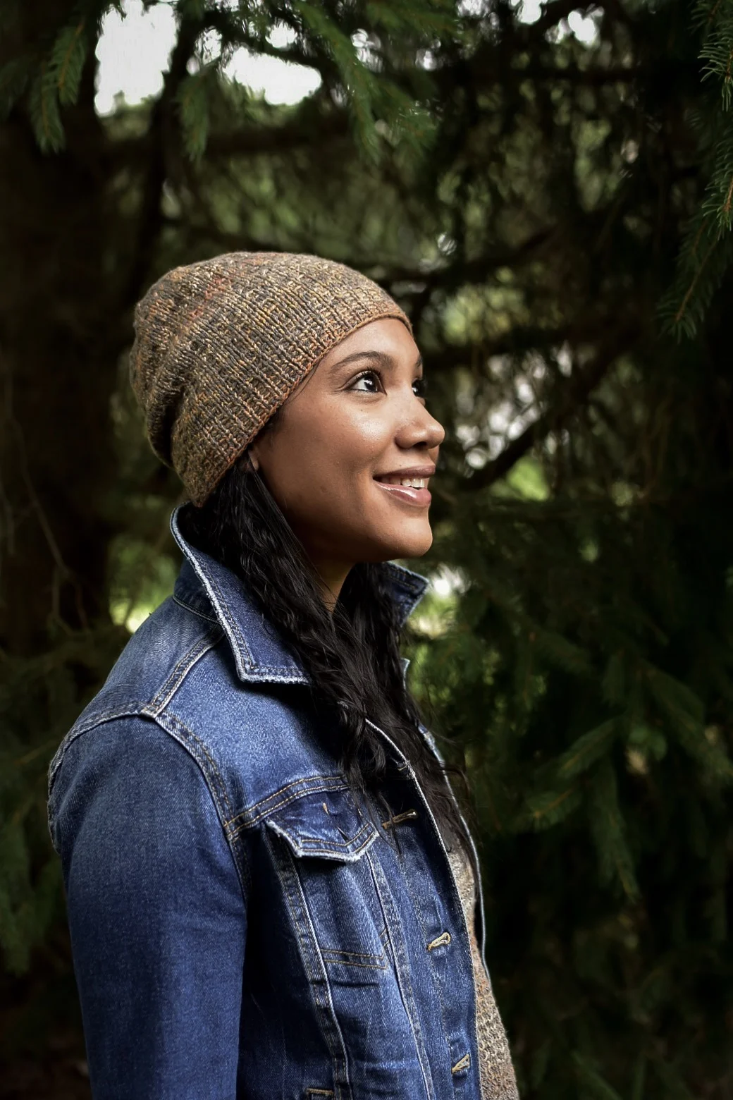 This hat is designed to fit with a bit of slouch and is offered in four sizes.This pattern includes yarn information for both versions of this hat… marled (as shown in